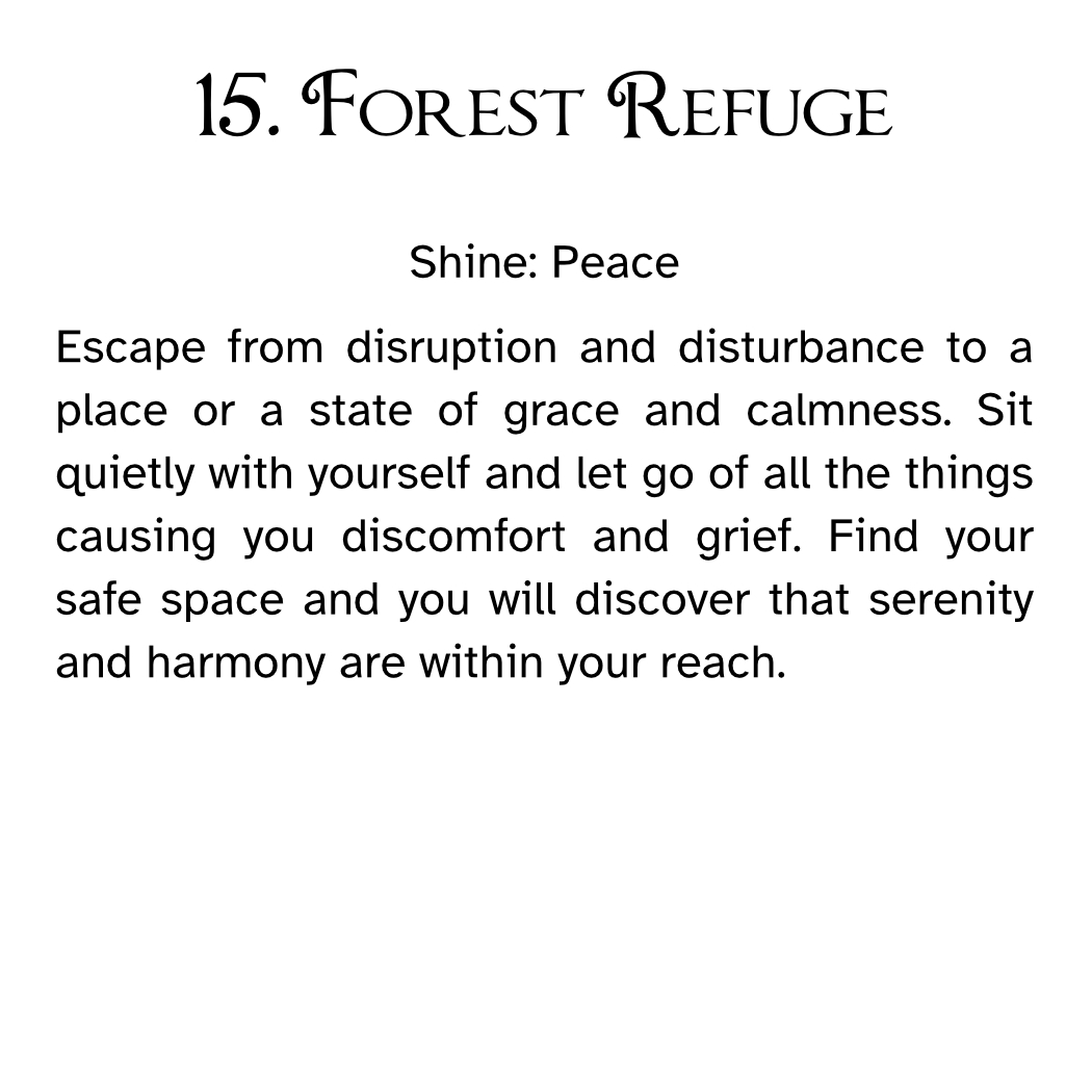 Your card was drawn in the Shine aspect. This aspect of the card celebrates you! Reflections are light that has bounced back from another source, but your light, your shine, is the origin of energy and inspiration inside of you, radiating out like magic. The shine aspect of each card talks about the best possibilities and the greatest outcomes, and about finding the spark inside of yourself. Draw a new card!
